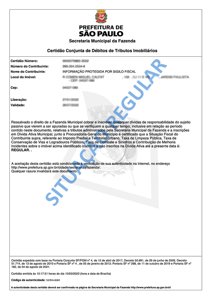 · Situação Fiscal e Enfitêutica. A certidão de situação fiscal e enfitêutica, exibe a existência ou não de débitos de IPTU em aberto relacionados a um imóvel.