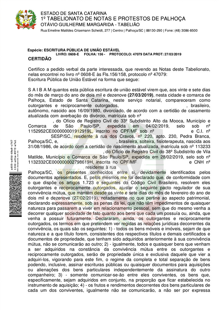 Vale ressaltar que todos os dados contidos nestes documentos ficam arquivadas no cartório de notas para conferência a qualquer momento.