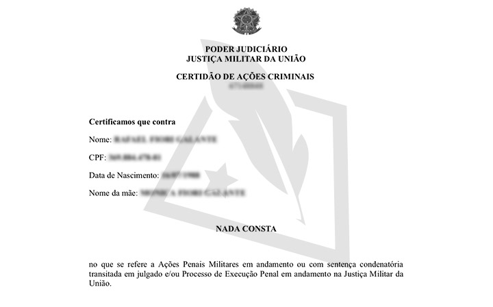 Você deve inserir o CPF. Assim, todas as informações aparecerão em referência a pessoa que tenha associado a seu nome, processos do Tribunal de Justiça. Assim, por meio dessa certidão, se poderá identificar se uma pessoa já foi ou se está sendo incriminada, processada e/ou julgada pela Justiça Militar da União.